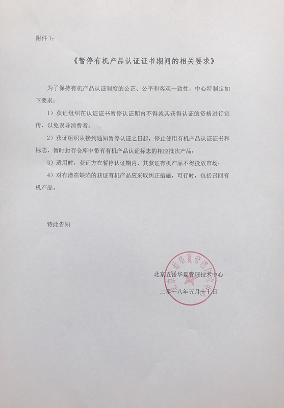 下一篇:关于注销新宾满族自治县云海家庭农场有机产品认证证书和认证标志的通知
